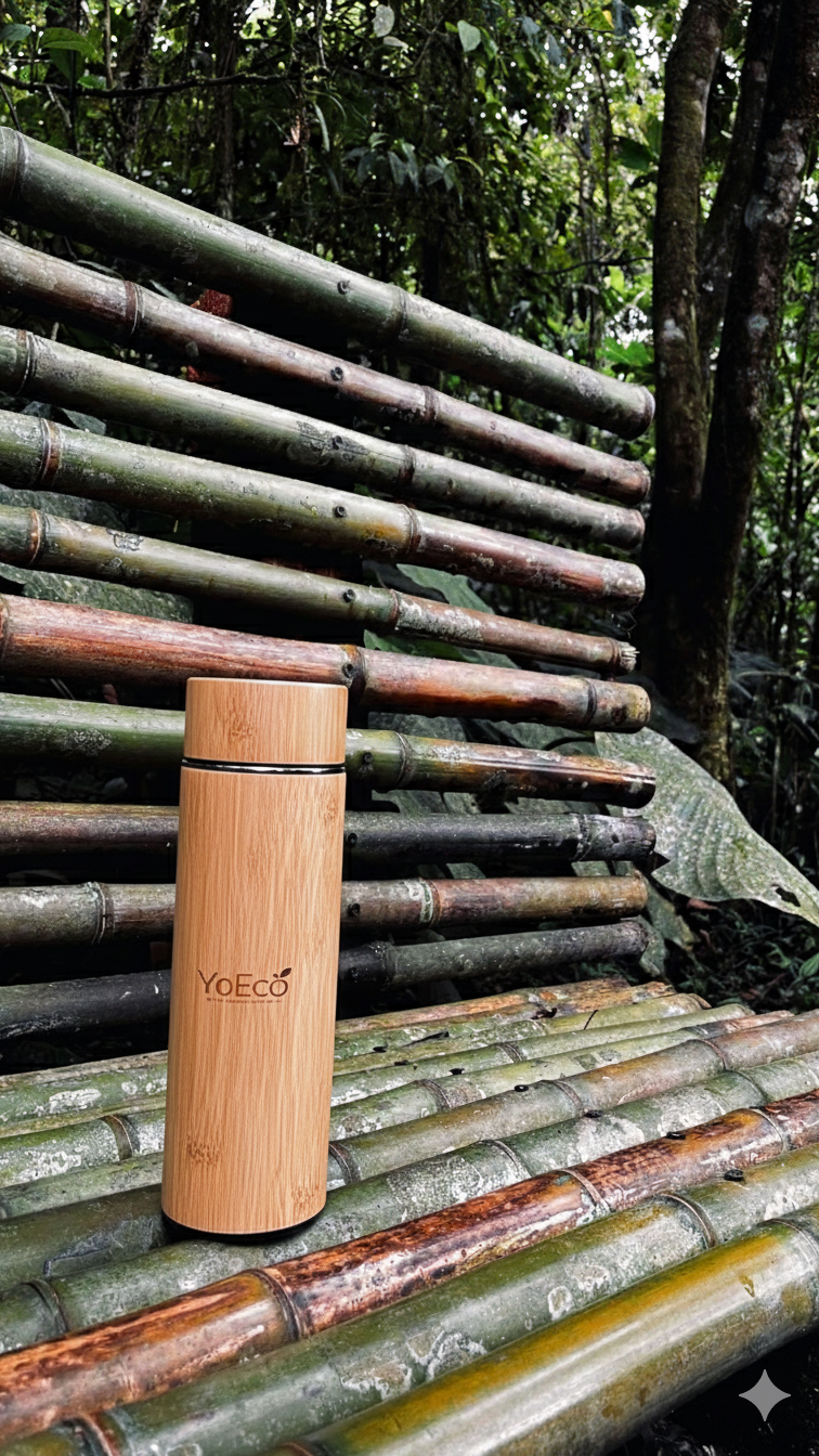 Siente la armonía entre funcionalidad y naturaleza con el Termo de Bambú YoEco, una pieza diseñada para acompañarte con estilo consciente en cada sorbo. Su exterior de bambú natural y su interior de acero inoxidable crean un equilibrio perfecto entre estética y rendimiento.